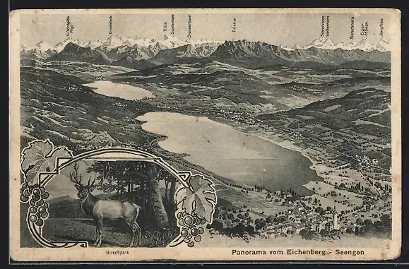 AK Seengen, Hirsch im Hirschpark, Panorama vom Eichenberg