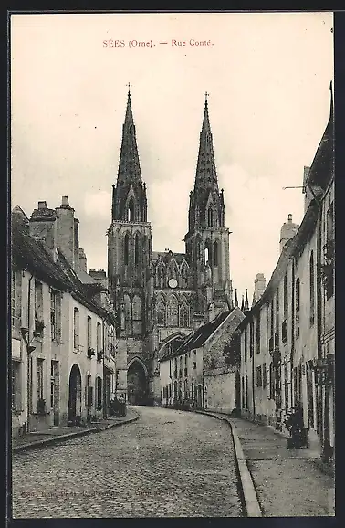 AK Sées /Orne, Rue Conté, Strassenpartie