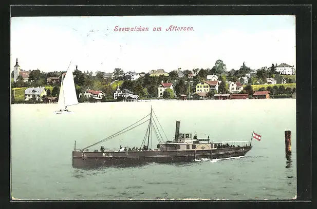 AK Seewalchen am Attersee, Dampfer und Segelboot auf dem See