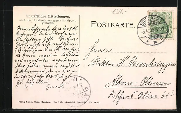 alte Ansichtskarte, gelaufen 1905, guter Zustand