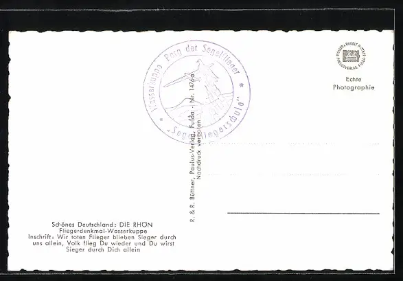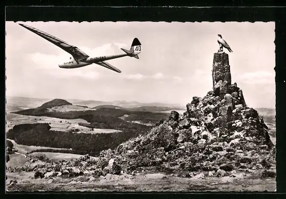 AK Segelflugzeug über der Rhön, Fliegerdenkmal