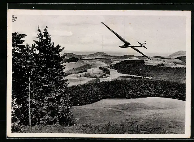 AK Segelflugzeug über der Wasserkuppe, Blick zur Maulkuppe