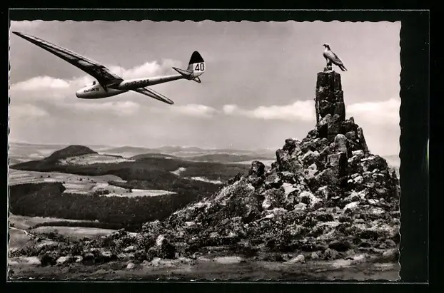 AK Segelflugzeug über der Wasserkuppe, Fliegerdenkmal