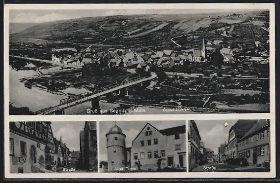 AK Segnitz a. Main, Strasse, Alter Turm, Gesamtansicht