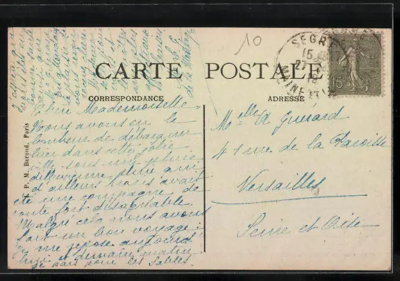 Personenbezogene Daten auf der Rückseite der Karte wurden durch blauen Textmarker unkenntlich gemacht. Die blauen Stellen sind auf die Vorderseite durchgeweicht und wirken sich negativ auf das Postkartenfoto aus