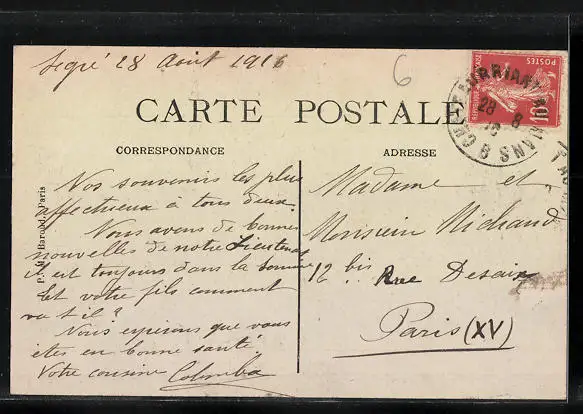 alte Ansichtskarte, gelaufen, Bugspur rechts oben, guter Zustand