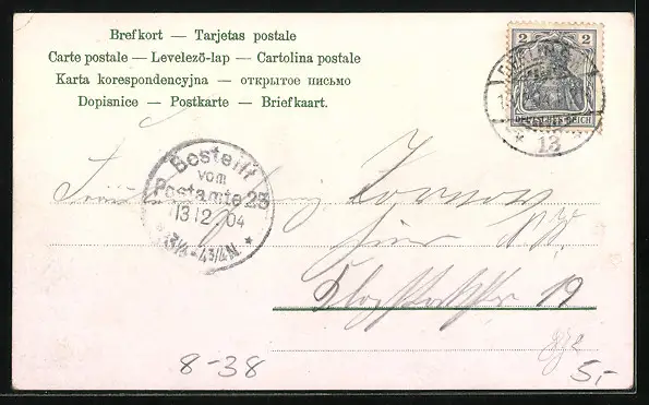 alte Ansichtskarte, gelaufen 1904, Eckknick re. oben, guter Zustand