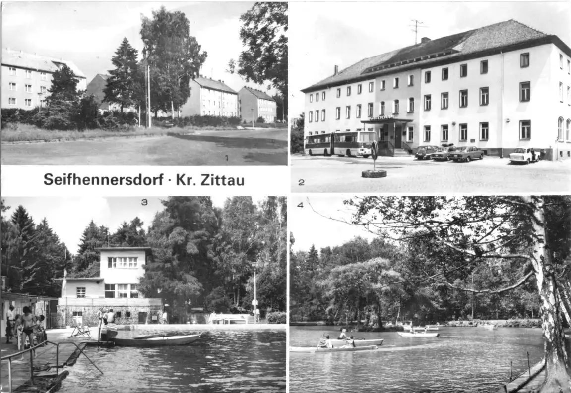 Ansichtskarte Seifhennersdorf Kr. Zittau vier Abb., - Nordstr., Betriebsferienheim, Waldbad, Gondelteich Erhaltung I-II postalisch gelaufen, gestempelt: unleserlich Druckvermerk: 1983 Herstellungsland: DDR Verlag: Bild und Heimat Reichenbach - 01 12 16 328