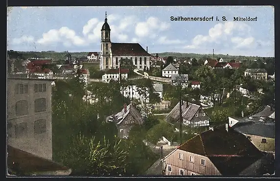 AK Seifhennersdorf i. S., Mitteldorf mit Kirche