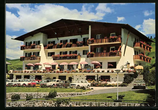 AK Seis /Bozen, Hotel Florian, Aussenansicht mit Terrasse