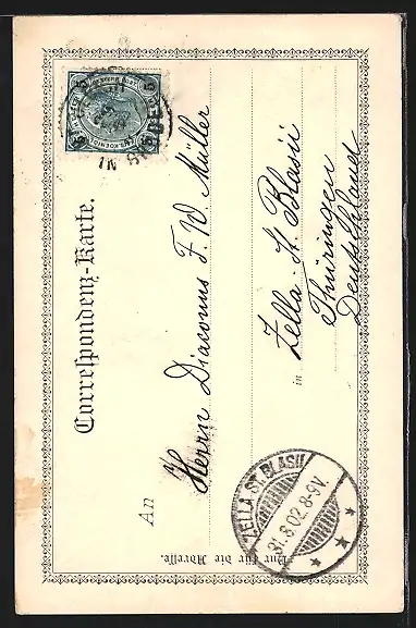 alte Ansichtskarte, gelaufen 1902, Stempelspur, guter Zustand