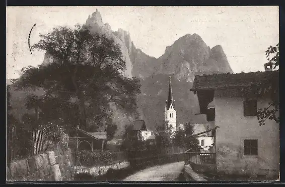 AK Seis am Schlern, Strassenpartie mit Kirche