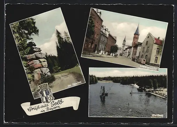 AK Selb in Bayern, Ludwigstrasse, Waldbad, Partie im Egertal