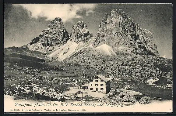 AK Sellajoch-Haus, Ansicht gegen Langkofelgruppe