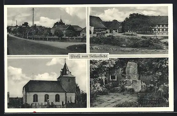 AK Sellenstedt, Kirche, Denkmal, Strassenpartie