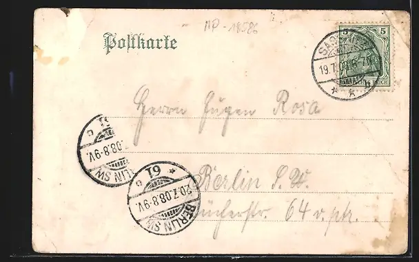 alte Ansichtskarte, gelaufen 1908, Eckknick oben li., rückseitig Oberflächenschaden, guter Zustand