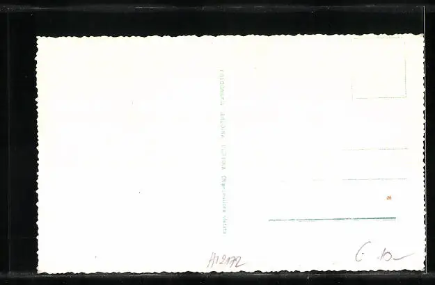 Personenbezogene Daten auf der Rückseite der Karte wurden durch blauen Textmarker unkenntlich gemacht. Die blauen Stellen sind auf die Vorderseite durchgeweicht und wirken sich negativ auf das Postkartenfoto aus