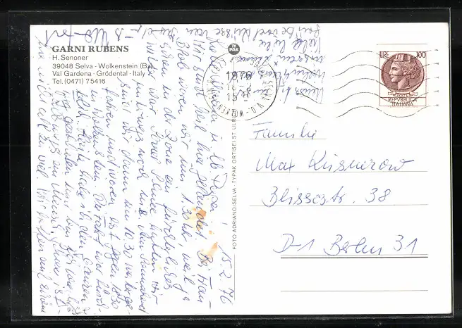 AK Selva - Wolkenstein, Garni Rubens in zwei Ansichten