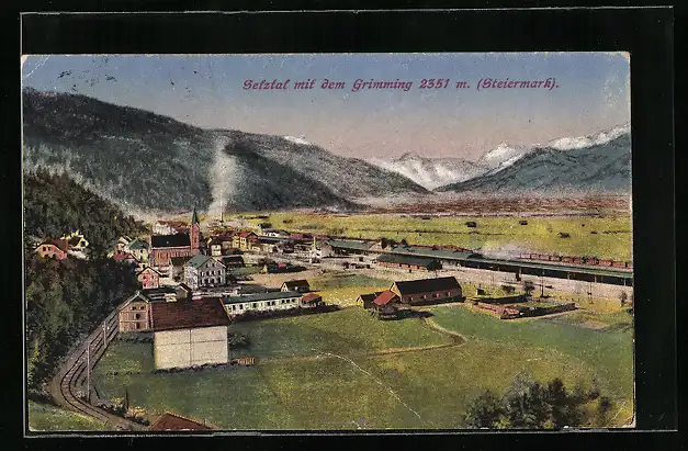 AK Selztal /Steiermark, Ortsansicht mit dem Grimming aus der Vogelschau