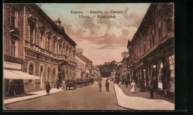 AK Semlin, Hauptgasse mit Geschäften