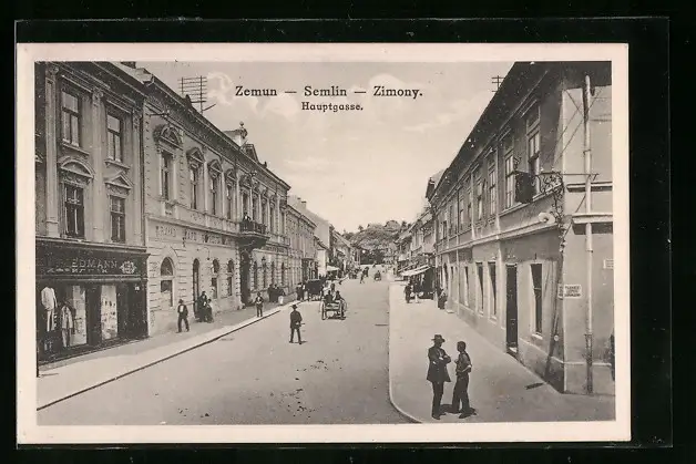 AK Semlin, Partie in der Hauptgasse mit Passanten