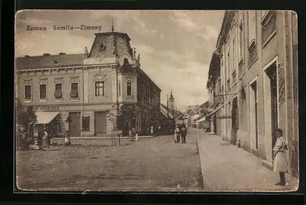 AK Semlin, Strassenpartie mit Geschäften