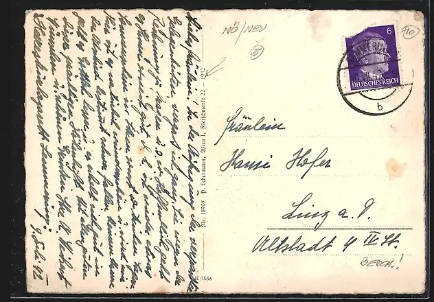 alte Ansichtskarte, gelaufen 1942, Briefmarke entfernt, Eckknick li. oben, guter Zustand