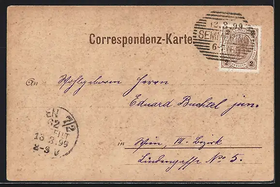 alte Ansichtskarte, gelaufen 1899, Eckknick li. oben, guter Zustand