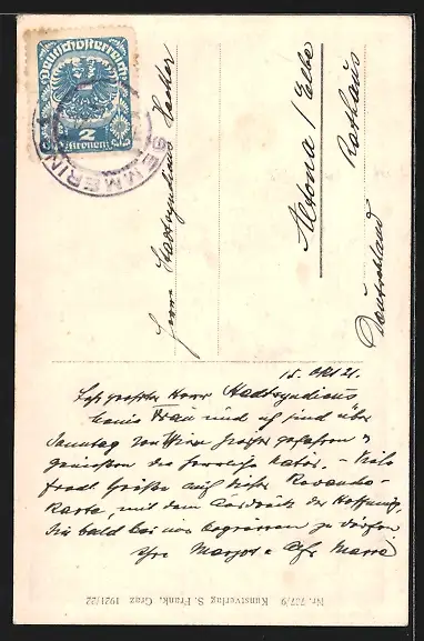 alte Ansichtskarte, gelaufen 1921, guter Zustand