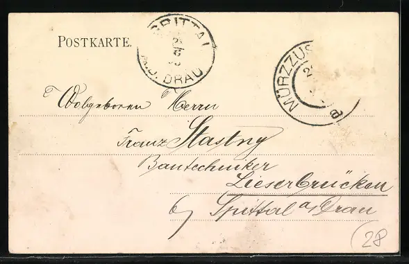 alte Ansichtskarte, gelaufen, Briefmarke entfernt, rückseitig Oberflächenschaden, guter Zustand