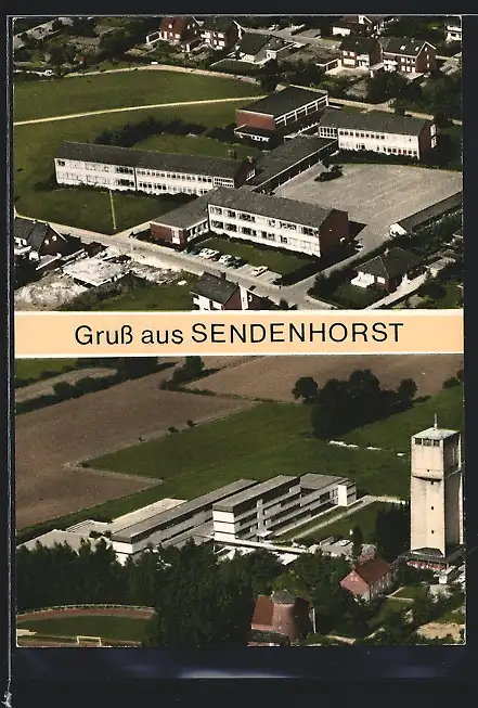 AK Sendenhorst /Westf., Schule, Wasserturm, Fliegeraufnahme
