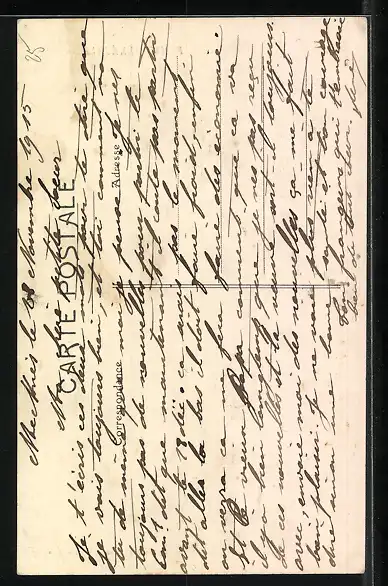Personenbezogene Daten auf der Rückseite der Karte wurden durch blauen Textmarker unkenntlich gemacht. Die blauen Stellen sind auf die Vorderseite durchgeweicht und wirken sich negativ auf das Postkartenfoto aus