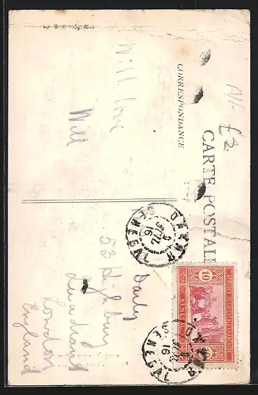 alte Ansichtskarte, gelaufen 1916, Eckknick unten re., Bugspur horiz. unten u. re. oben, guter Zustand