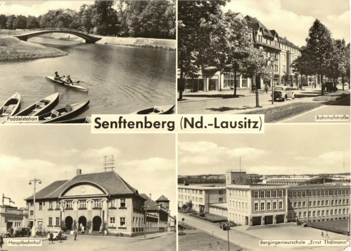 Ansichtskarte Senftenberg N.-L. vier Abb. - Paddelstation, Bahnhofstr., Hauptbahnhof, Bergingenieurschule Erhaltung I-II postalisch gelaufen, gestempelt: Senftenberg, 23.9.71 Druckvermerk: 1968 Herstellungsland: DDR Verlag: VEB Bild und Heimat, Reichenbach i. V. - 6/898