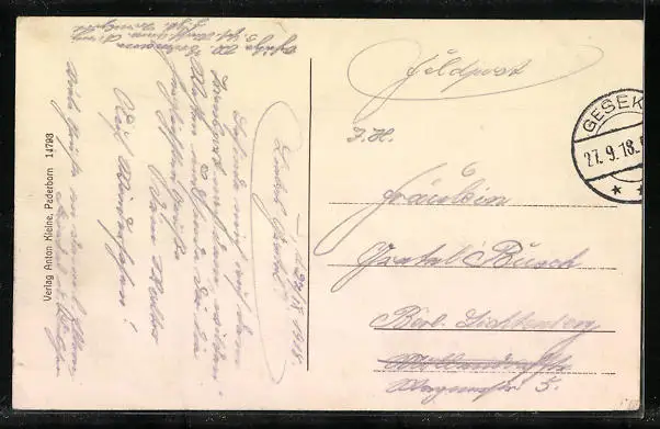 alte Ansichtskarte, gelaufen als Feldpost 1918, guter Zustand