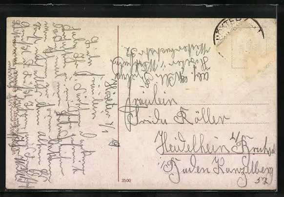 alte Ansichtskarte, gelaufen, Briefmarke entfernt, Eckschäden unten, guter Zustand
