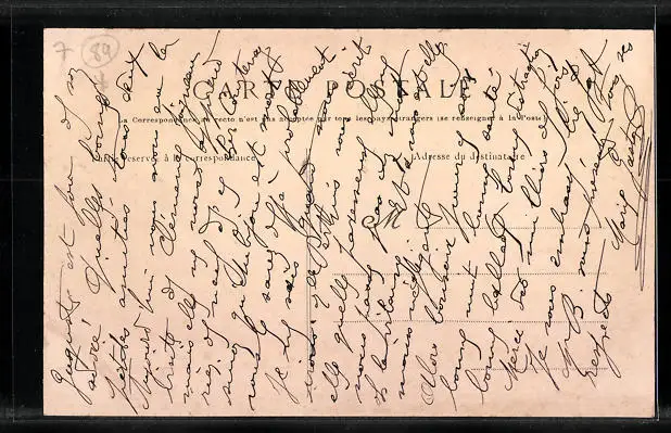 Personenbezogene Daten auf der Rückseite der Karte wurden durch blauen Textmarker unkenntlich gemacht. Die blauen Stellen sind auf die Vorderseite durchgeweicht und wirken sich negativ auf das Postkartenfoto aus