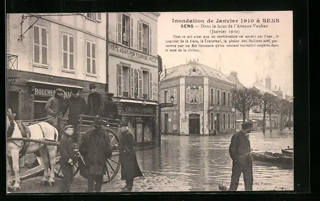 AK Sens, inondations 1910, dans le haut de l`avenue vauban