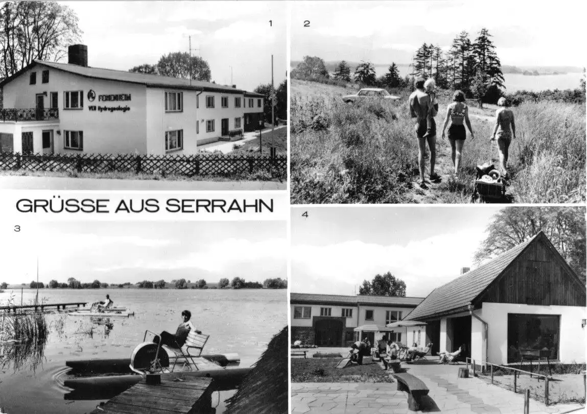 Ansichtskarte Serrahn Kr. Güstrow vier Abb., - Ferienheim VEB Hydrogeologie Erhaltung I-II postalisch gelaufen, gestempelt: Krakow am See, 21.8.89 Druckvermerk: 1978 Herstellungsland: DDR Verlag: Bild und Heimat Reichenbach - 01 02 03 383K