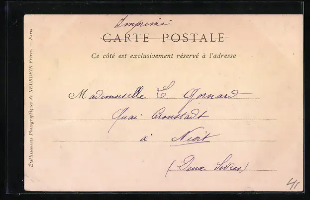 alte Ansichtskarte, gelaufen 1903, Eckknicke re. unten, Bugspur re. mittig, vorderseitig Klebe- und Papierreste, guter Zustand