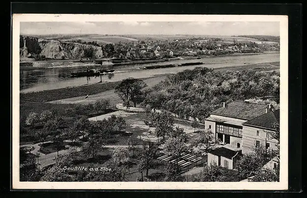 AK Seusslitz / Elbe, Ortsansicht aus der Vogelschau mit Gasthof Seusslitz