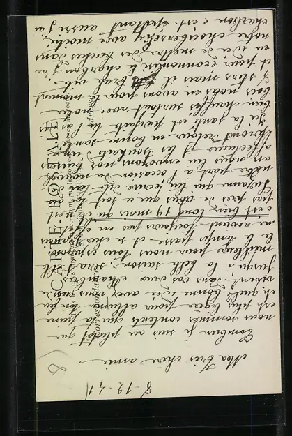 Personenbezogene Daten auf der Rückseite der Karte wurden durch blauen Textmarker unkenntlich gemacht. Die blauen Stellen sind auf die Vorderseite durchgeweicht und wirken sich negativ auf das Postkartenfoto aus