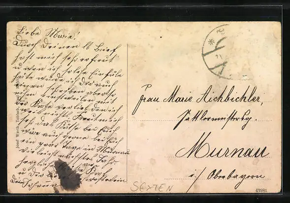 alte Ansichtskarte, gelaufen, Briefmarke entfernt, rückseitig Oberflächenschaden, guter Zustand