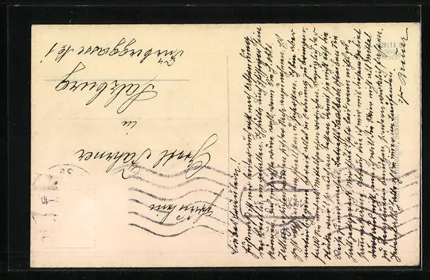 alte Ansichtskarte, gelaufen, Briefmarke entfernt, rückseitig Oberflächenschaden, guter Zustand