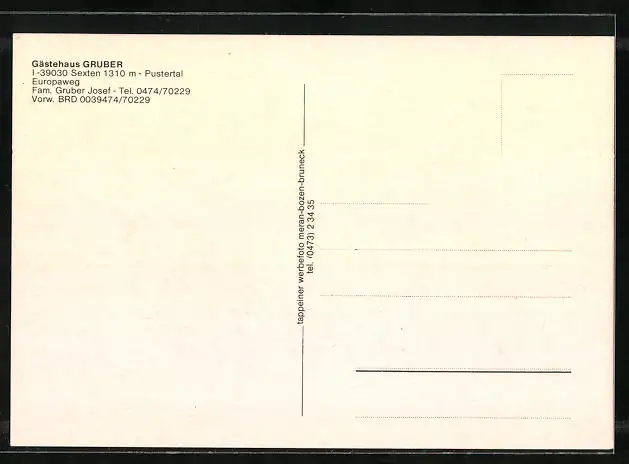 AK Sexten /Pustertal, Gästehaus Gruber, Europaweg