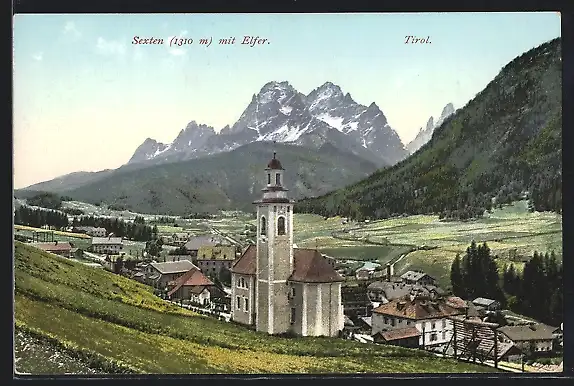 AK Sexten, Teilansicht mit Kirche und Elfer
