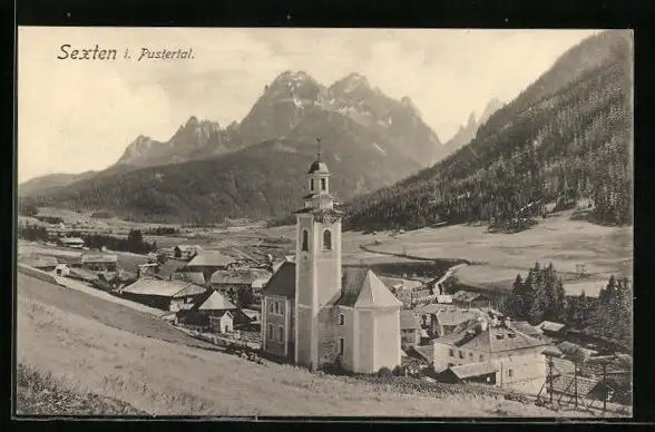 AK Sexten i. Pustertal, Teilansicht mit Kirche