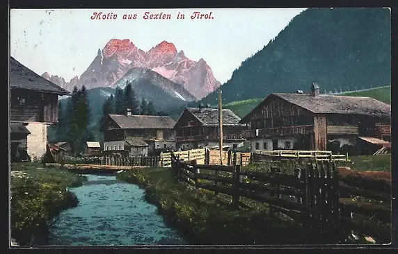 AK Sexten in Tirol, Ortspartie mit Bergen