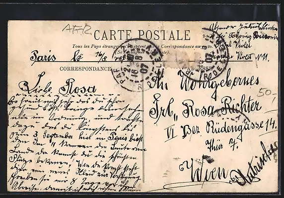 alte Ansichtskarte, gelaufen, Briefmarke entfernt, guter Zustand