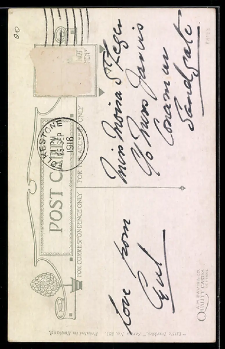 alte Ansichtskarte, gelaufen 1916, Briefmarke entfernt, rückseitig Oberflächenschaden, Stempelspur, guter Zustand